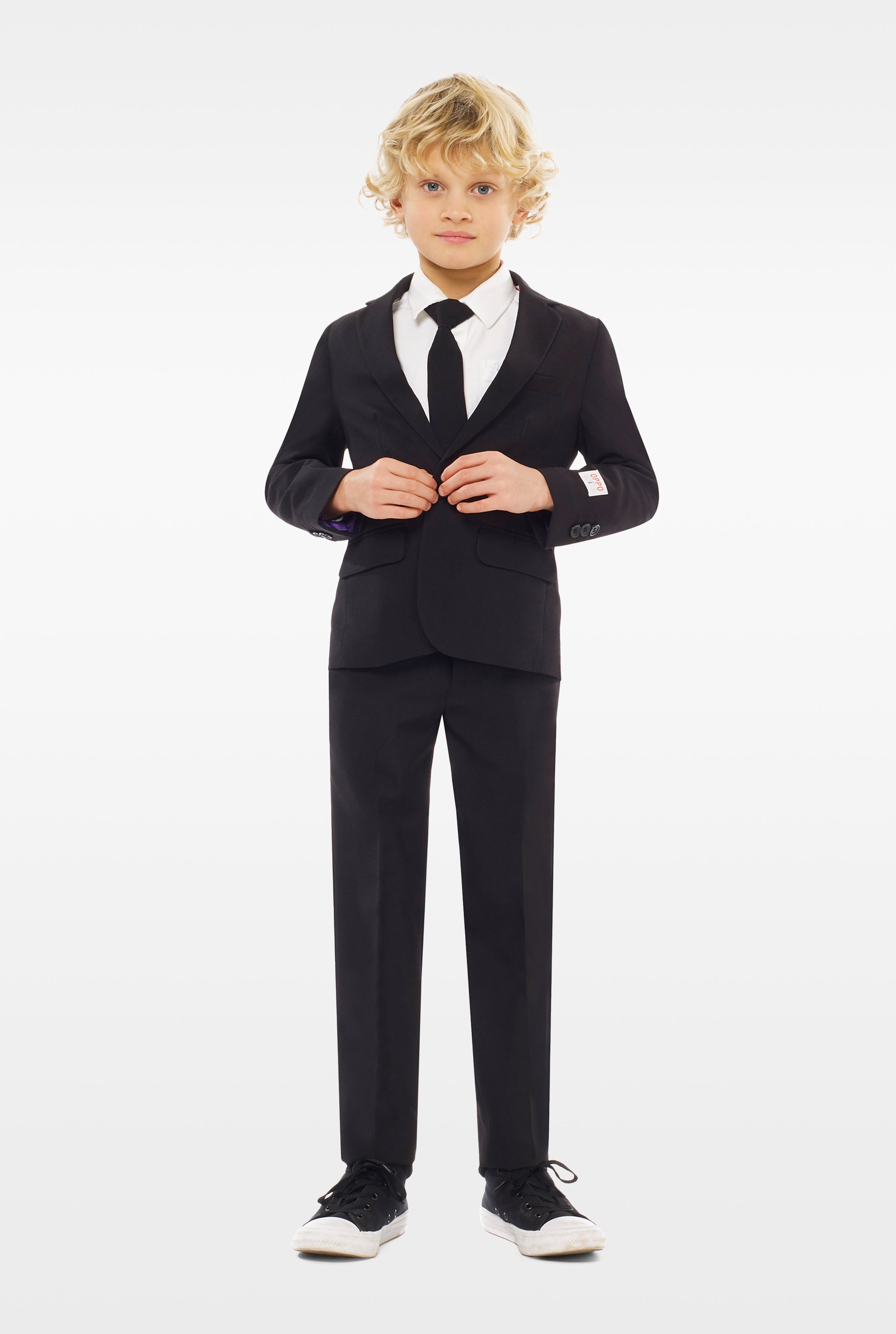Why would you rent a suit when you can buy one for less than half the price? Just get your handsome little man dressed up with this stylish black suit and top it off with the included clip-on tie. Btw, this suit is comfy enough to wear all day. And guess what: itβs also machine-washable, so you donβt have to worry about a stain or two.