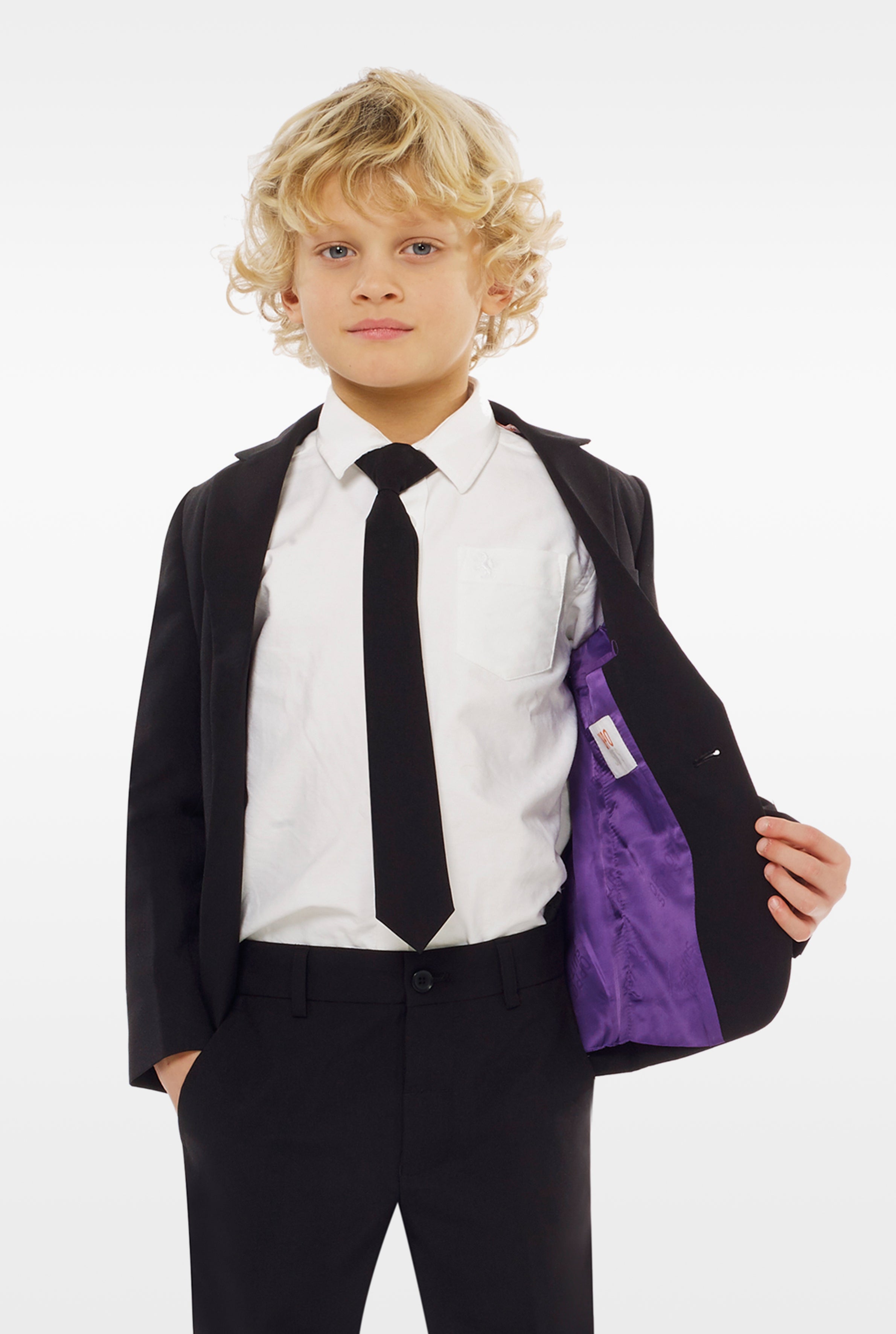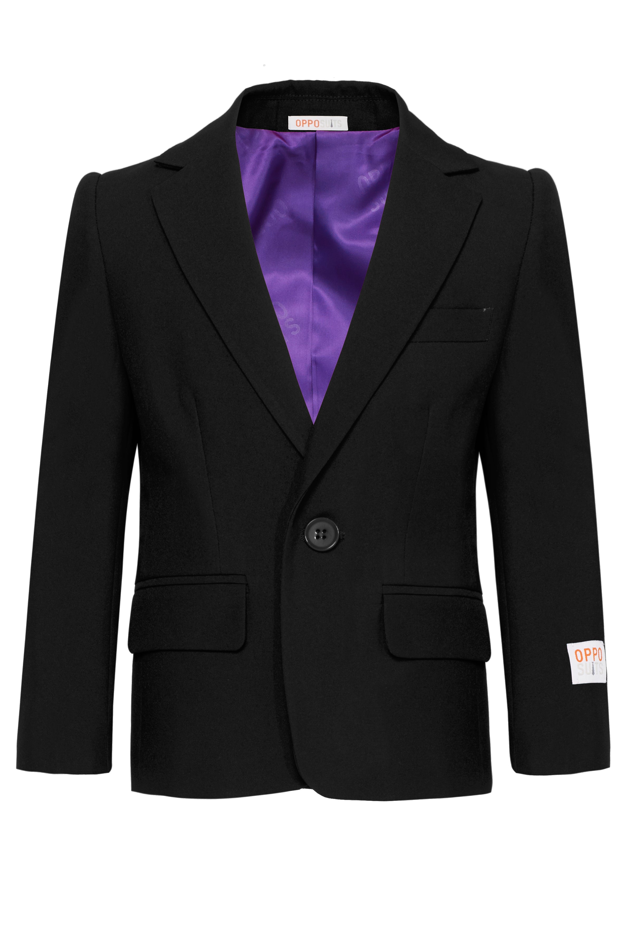 - Includes: Jacket, Pants, Safe clip-on tie