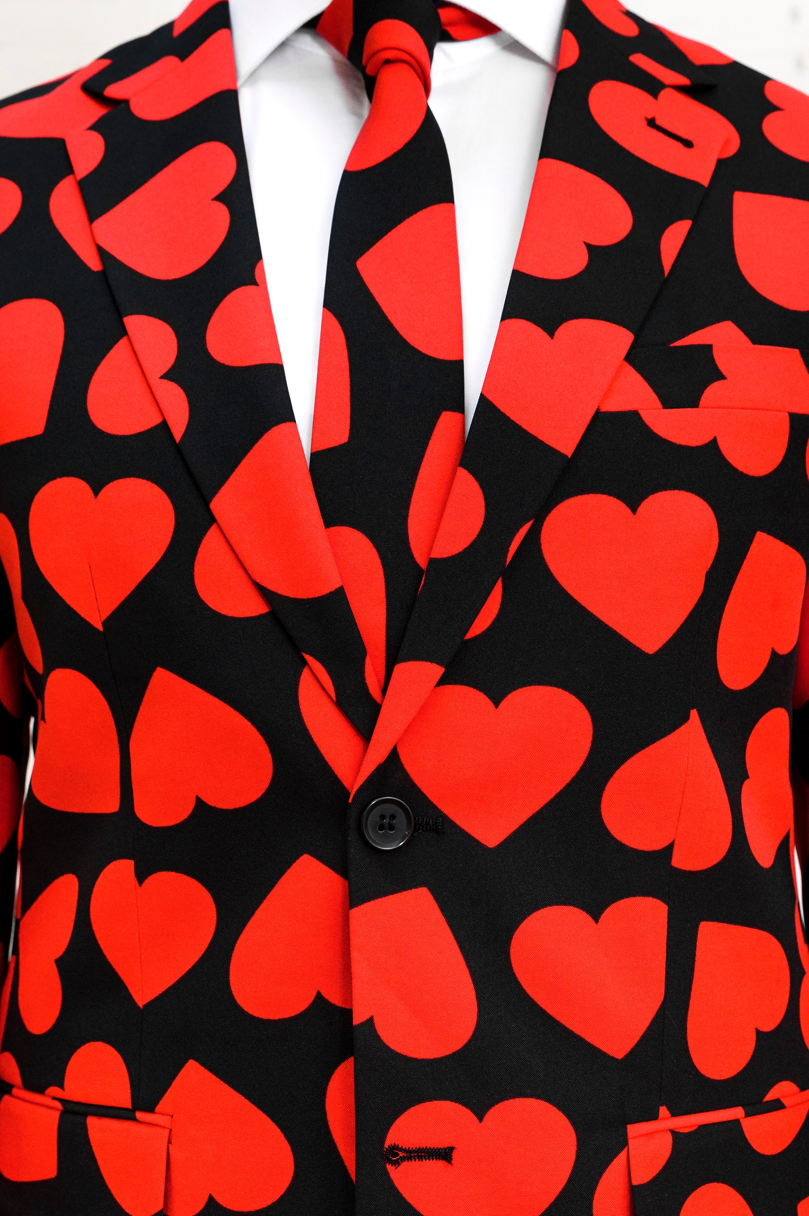 If you want to be treated like a king, you must first dress like a king – and doing so has never been easier than with our King of Hearts suit. This stylish heart suit will give you the royal appearance you deserve. Now, go find yourself a throne, you King of Hearts!