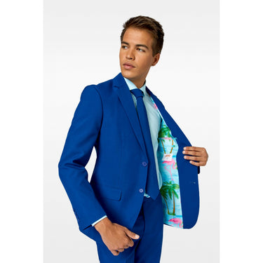 Beauty comes from the inside, but also from the outside in this case. This stylish navy-blue suit has a flamingo lining, so itโs totally appropriate from a wedding to the beach. Moreover, a dark blue suit is actually useful for every occasion and therefore an essential piece in every modern manโs wardrobe. So, grab this affordable one which has a hint of fun, and bring a few laughs whenever you feel like it.