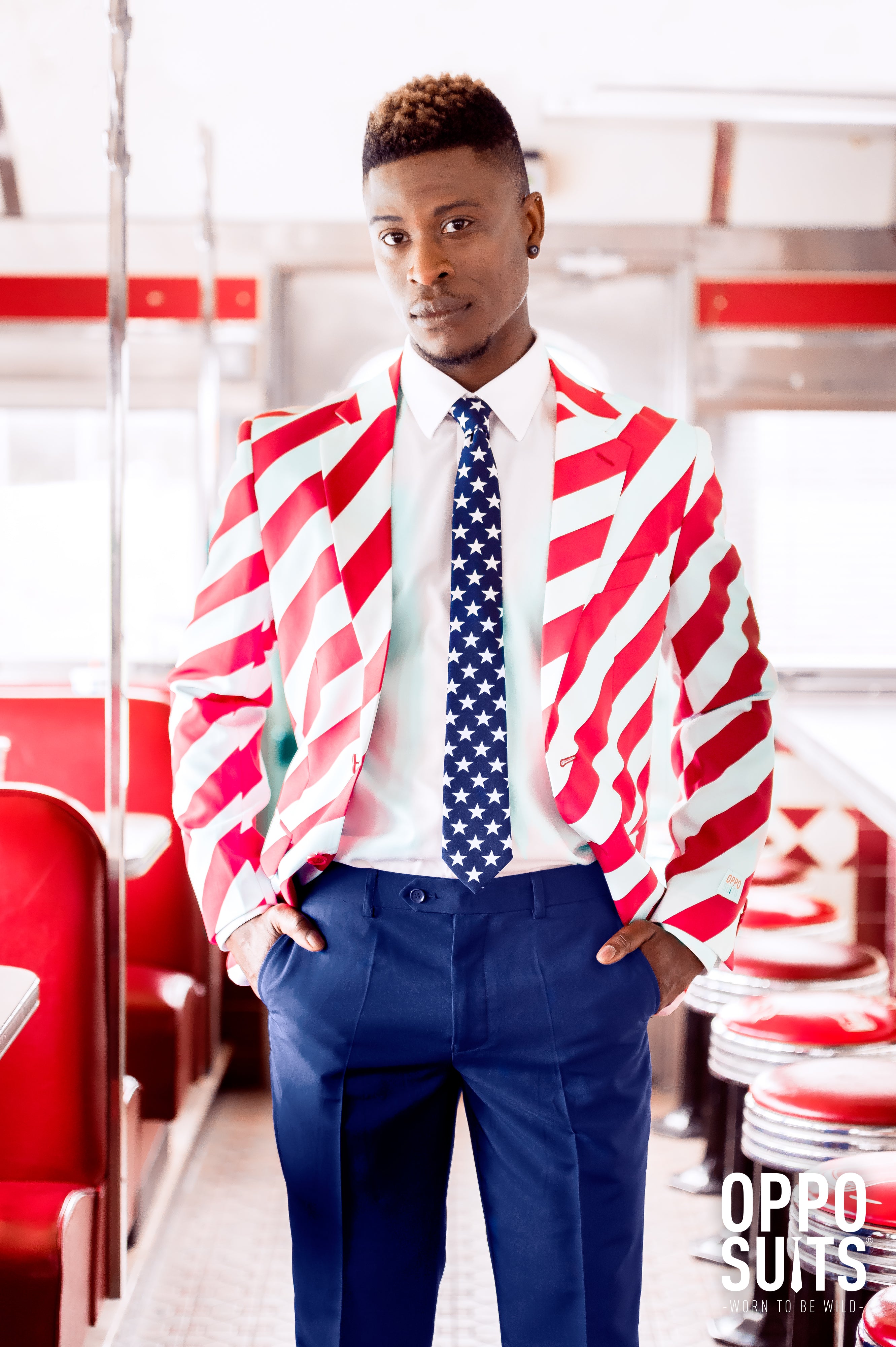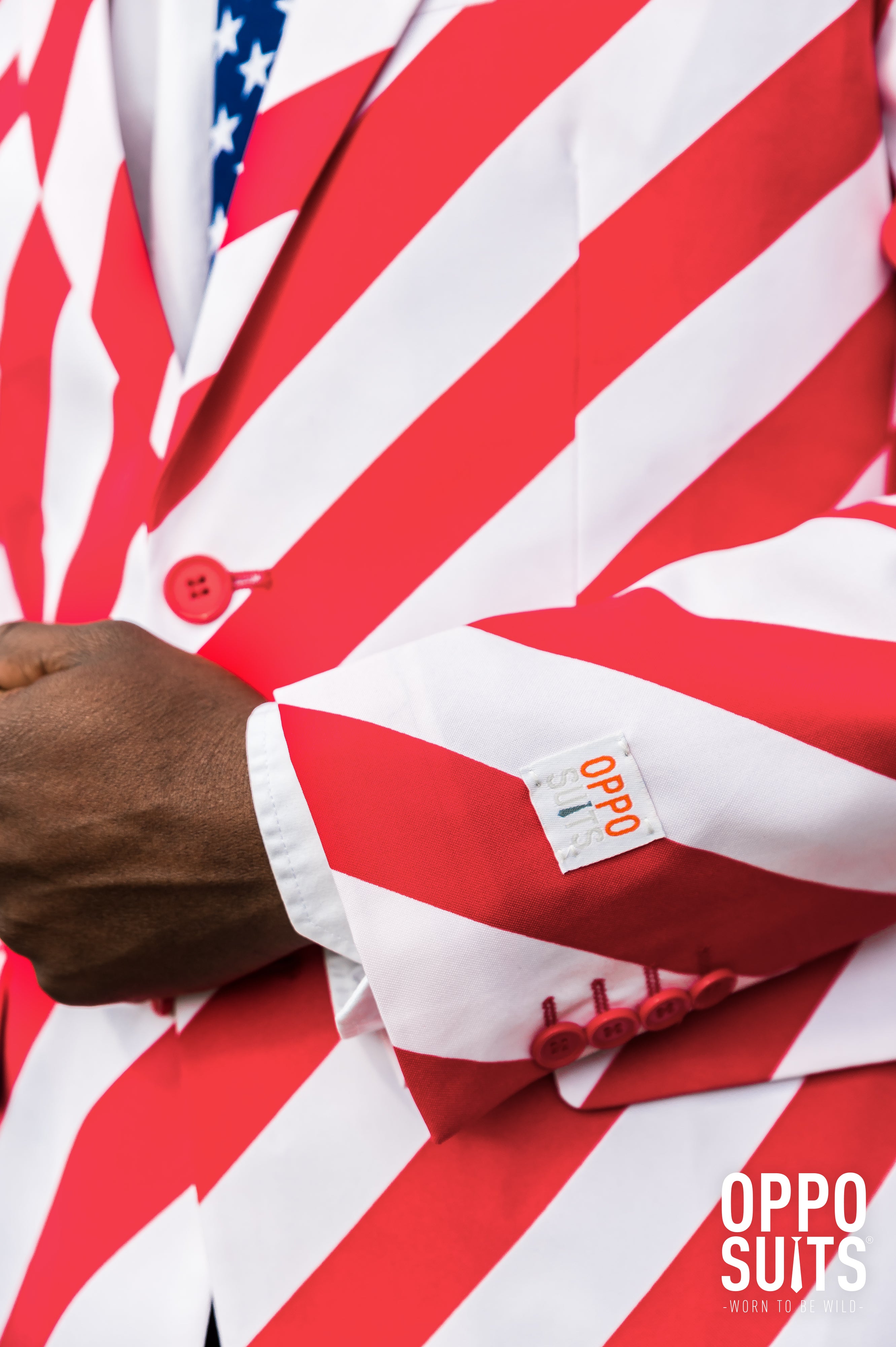Add some stars to your wardrobe and claim the spotlight on the 4th of July, during campaign rallies, or at the Olympics with this USA suit. This American flag suit from OppoSuits will make sure you'll be the highlight of the show. God bless the United Stripes of America!